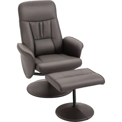 HOMCOM 2 Pcs Reclining Armchair Ottoman 360 Swivel Home Furniture PU Leather Brown