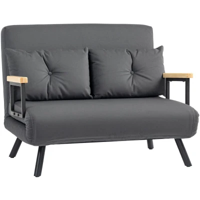 HOMCOM 2 Seater Sofa Bed, Click Clack Convertible Bed Settee, Modern Velvet Feel Fabric Couch with Tufted Cushions, Wood Armrests for Living Room, Bedroom, Guest Dark Grey