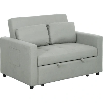 HOMCOM 2 Seater Sofa Bed, Convertible Bed Settee, Modern Fabric Loveseat Couch with Cushions, Side Pockets for Living Room, Guest Light Grey
