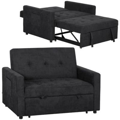 ManoManoA small place to relax and rest - day and night. This HOMCOM sofa bed serves as a two-seater sofa for daytime use and a bed for nighttime use. Filled with foam, this is a soft and comfortable piece to sink into, with the back and arms giving plenty of support. Two pillows included for extra comfort. The back angle is adjustable between 105°, 130° and 180°. Wrapped in soft snow flannel upholstery, finished with two handy side pockets. Specifications: ● Colour: Black ● Material: Snow Flannel (Polyester), Eucalyptus Wood, Foam, Plastic ● Sofa Dimension: 120W x 84D x 86Hcm ● Bed Dimension: 101W x 178D x 44Hcm ● Seat Size: 101W x 58Dcm ● Seat Height: 45cm ● Seat Thickness: 14cm ● Back Size: 101W x 39Hcm● Back Thickness: 13cm ● Armrest Size: 11W x 85Dcm ● Armrest Height: 16cm ● Pillow Size: 45L x 30W x 13Dcm ● Weight Capacity: 240kg ● Item Label: 839-900V71BK Just so you know: this item ships and arrives in separate boxes. Delivery times may vary with each box. Box quantity: 2 Features: ●