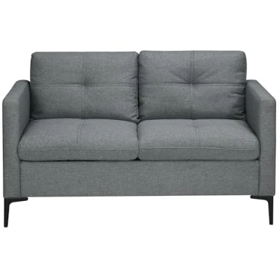 HOMCOM 2 Seater Sofa for Living Room, 133cm Loveseat Sofa, Modern Fabric Couch with Steel Legs Bedroom, Dark Grey