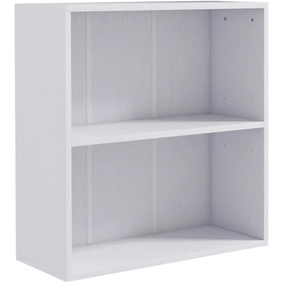 General description This 2-tier storage shelf serves as a versatile bookshelf or cupboard cabinet, perfect for your home, office, or study. It features a stylish white finish and is designed to enhance any room's decor. Technical specifications Colour: White Material: Particle Board Dimensions: 60L x 24W x 63H cm Adjustable shelf heights: 22 cm, 28.5 cm, 35 cm Item Label: 836-565V80WT Installation Easy assembly with numbered parts Includes assembly instructions Flat-packed for convenience Usage Ideal for displaying books, photos, decorations, and more Customizable height options for the middle shelf