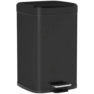 General description This HOMCOM Kitchen Pedal Bin is a modern and compact 20L dustbin designed for kitchens and other spaces. Made from durable metal, it is built for everyday use and features a pedal for hands-free operation. The soft-close lid ensures quiet closing, making it ideal for family environments. With a removable inner bucket, cleaning is made easy, and the stay-open option provides convenience when needed. Technical specifications Colour: Black Material: Metal, PP plastic Overall Dimensions: 35L x 28W x 45H cm Volume: 20L Item Label: 851-039V01BK Other information Fingerprint-proof metal structure Cool, modern cubic shape Removable bucket design with a hole to fix bin bag for easy cleaning No assembly required