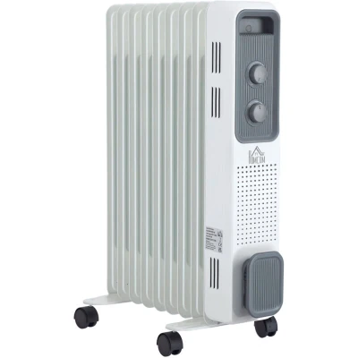 HOMCOM 2000W Oil Filled Radiator, 9 Fin, Portable Electric Heater with 3 Heat Settings, Safety Cut Off and Wheels, White