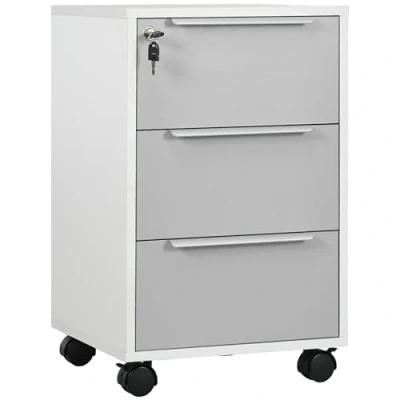 HOMCOM 3 Drawer Locking File Cabinet Mobile Chest of Drawers Side Table on Wheels for Home Office, Bedroom and Living room