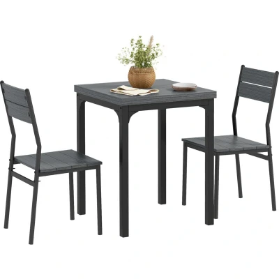 HOMCOM 3 Pieces Compact Dining Table 2 Chairs Set Wooden Metal Legs Bistro Cafe Kitchen Breakfast Bar Home Furniture, Grey Wood Grain