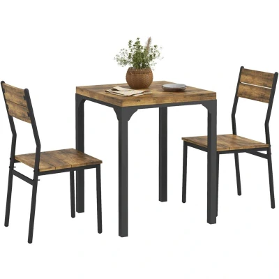 HOMCOM 3 Pieces Compact Dining Table 2 Chairs Set Wooden Metal Legs Bistro Cafe Kitchen Breakfast Bar Home Furniture, Rustic Brown