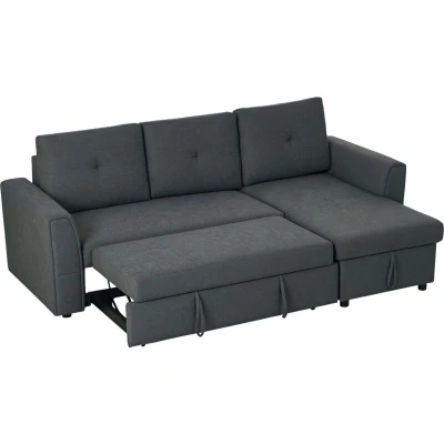 HOMCOM 3 Seater Sofa Bed, L Shaped Corner Sofa, Pull Out with Storage, Convertible Click Clack Settee Sectional Sleeper Futon for Living Room, Office, Dark Grey