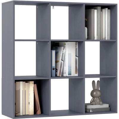 HOMCOM 3 Tier Bookshelf, Modern Cube Bookcase with 9 Open Storage Compartments, Freestanding Display Unit for Living Room, Bedroom, Study, Grey