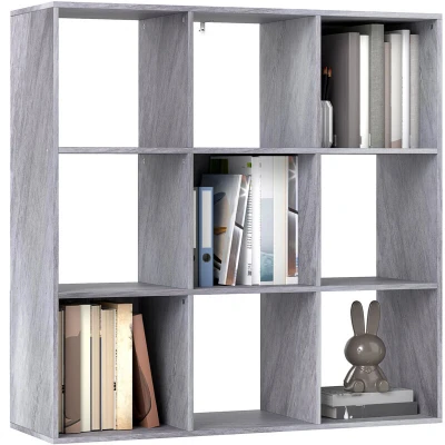 HOMCOM 3 Tier Bookshelf, Modern Cube Bookcase with 9 Open Storage Compartments, Freestanding Display Unit for Living Room, Bedroom, Study, Marble Grey