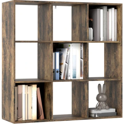 HOMCOM 3 Tier Bookshelf, Modern Cube Bookcase with 9 Open Storage Compartments, Freestanding Display Unit for Living Room, Bedroom, Study, Rustic Brown