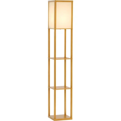 HOMCOM 3 Tier Floor Lamp, Light with Storage Shelf, Reading Standing Lamp for Living Room, Bedroom, Kitchen, Dining Office, Dorm, 160cm, Natural