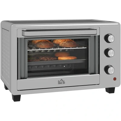 HOMCOM 30 Litre Mini Oven, Countertop Electric Cooker & Grill for Roasting, Baking, Grilling with Adjustable Temperature, 60 Min Timer, Baking Tray and Wire Rack, 1600W, Silver