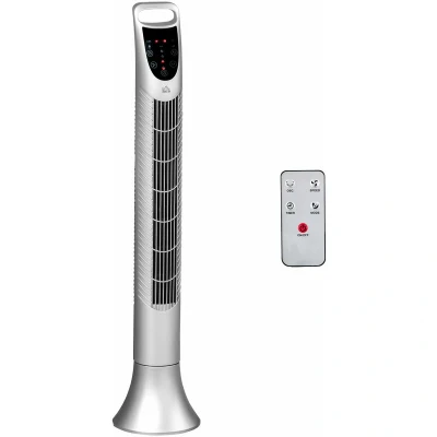 General description Keep cool and carry on, even during peak summer. The HOMCOM LED 36 Inch Tower Fan is designed to maintain the perfect temperature in your home, office, and beyond. With three speeds (low, medium, high) and three wind modes (normal, natural, sleep), this fan is easy to adjust to your cooling preferences. Its tall design and 70° oscillation ensure a larger area is covered, providing effective airflow throughout the space. The fan features an LED panel for easy control and includes a remote for convenient operation from a distance. Technical specifications Colour: Silver Material: ABS Plastic Overall Dimensions: Φ20 x 91.5H cm Main Body Size: Ф10 cm Base Size: Ф20 cm Power Cable Length: 160 cm Voltage: 220-240V/50HZ Power: 40W Item Label: 824-016SR Usage 7.5 hour timer - sets to a duration you want, ideal for night times. Safe auto turn-off feature. Modern and sleek design suitable for all home and office areas. LED panel displays and changes speed, fan mode, timer,