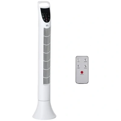 HOMCOM 36'' Freestanding Tower Fan, 3 Speed Mode, 7.5h Timer, 70 Degree Oscillation, LED Panel, 5M Remote Controller, White