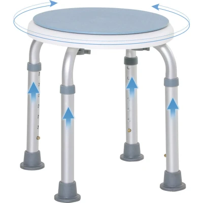 ManoManoGeneral description Made for assistance in the shower or bath, this bath stool from HOMCOM is suitable for the elderly or those who need extra help daily. The stool features a full rotating seat, allowing easy movement from side to side, and is adjustable to six different height levels for optimal comfort. Technical specifications Brand: HOMCOM Colour: Light Blue and white Materials: Aluminium, PP plastic, and TPR rubber Dimensions: Φ33 x 35.5-48.5 cm Net weight: 1.65 kg Maximum load: 135 kg Other information The rotatable seat is not electric.