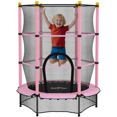 HOMCOM 4.6FT Kids Trampoline with Safety Enclosure, 55" for Toddlers, Outdoor Indoor Mini Ages 3 10 Years, Pink