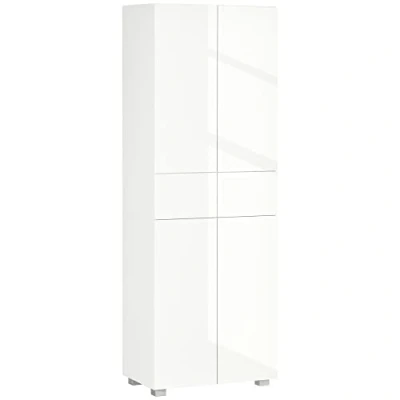 HOMCOM 4 Door Kitchen Cupboard, Freestanding 5 Tier Storage Cabinet with 3 Adjustable Shelves, 2 Drawers for Living Room, Dining Push to Open Design, High Gloss White