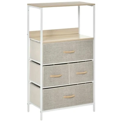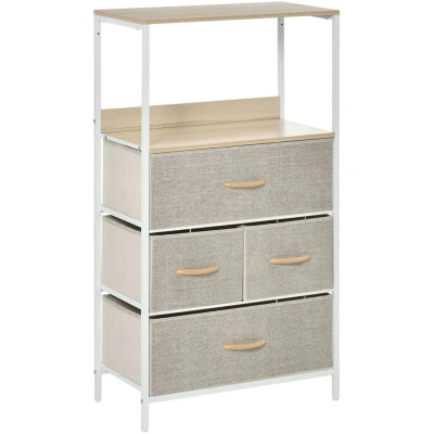 Opt for a soft approach to home storage with the stylish and practical fabric drawer unit from HOMCOM. Designed to seamlessly blend with various interior styles, this versatile storage solution features a combination of two large and two small fabric drawers complemented by two top shelves, providing a functional mix of hidden and open storage options.