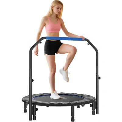 General description The HOMCOM 45'' Foldable Mini Fitness Trampoline is designed for a fun and effective workout experience. Featuring a sturdy foam handle for added safety and stability, this trampoline is perfect for users of all ages looking to improve their fitness levels while enjoying a low-impact exercise option. Other information