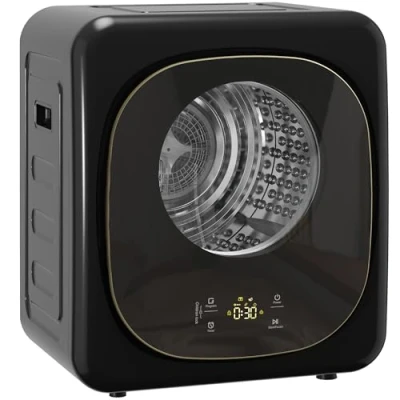 Five drying modes: One-touch controls on this compact tumble dryer offer ECO, low-temp, baby clothes, underwear, and odour removal settings. 60 °C sterilisation and the smart sensor ensure hygienic, efficient, and gentle drying Compact yet spacious: This 800W small tumble dryer is suitable for limited spaces, handling up to 4 kg of wet laundry such as 10 T-shirts, one bedsheet or 25 small towels, so you can easily keep up with family washing in flats or utility rooms Crease control technology: This vented dryer's large stainless steel drum uses forward and reverse tumble action to reduce wrinkles, creasing, and tangling. Clothes come out evenly dried, soft, and ready to wear for stress-free mornings Touch-control display: Easily operate this portable tumble dryer with a digital touch panel showing drying time, temperature, and mode, plus safety features like child lock and auto shut-off when the door opens Space-saving design: Great as a portable dryer for smaller spaces or flats, this portable dryer can be freestanding, stacked using a bracket with a washing machine, or wall-mounted for flexible setup