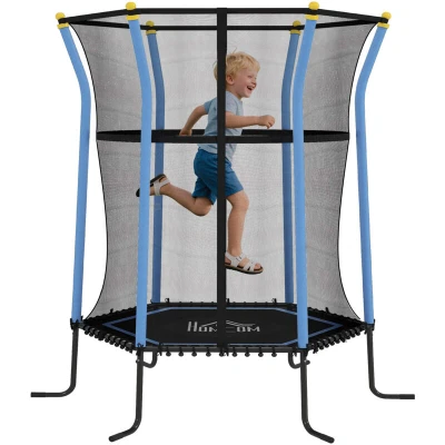 HOMCOM 5.4 FT/ 64 Inch Kids Trampoline With Enclosure Net Mini Indoor Outdoor Trampolines for Child Toddler Age 3 10 Years Blue