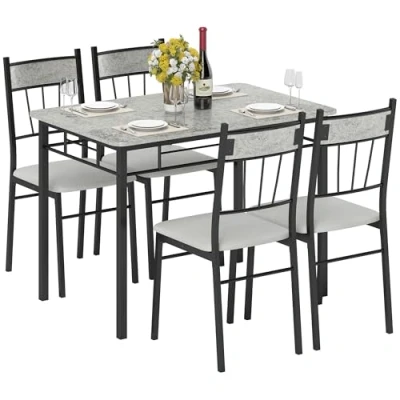 HOMCOM 5 Pieces Dining Room Set, Modern Table and Chairs Set 4 with Marble Effect Tabletop, Padded Kitchen Metal Frame, Light Grey