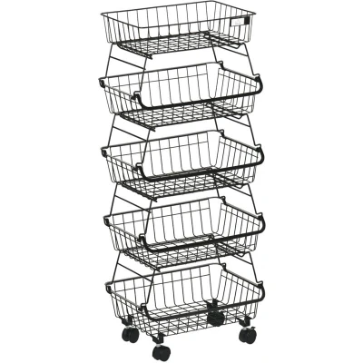 HOMCOM 5 Tier Storage Trolley Cart Vegetable Rack with Wheels for Kitchen