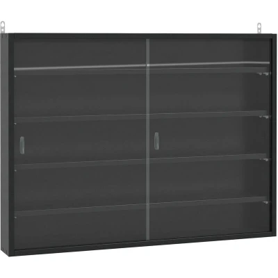 HOMCOM 5 Tier Wall Display Shelf Unit Cabinet w/ 4 Adjustable Shelves Glass Doors Home Office Ornaments 60x80cm Black