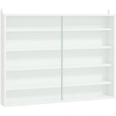 HOMCOM 5 Tier Wall Display Shelf Unit Cabinet w/ 4 Adjustable Shelves Glass Doors Home Office Ornaments 60x80cm White