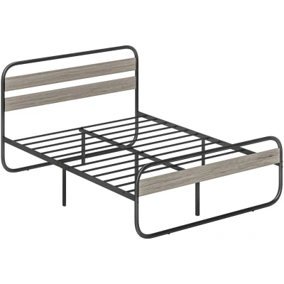 HOMCOM 5ft King Size Bed Frame, Industrial Style Metal Platform Frame with Under Storage, No Box Spring Needed, Easy Assembly, Grey