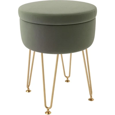 HOMCOM 5L Velvet Storage Ottoman, Modern Round Footstool with Metal Hairpin Legs and Removable Lid for Hallway, Bedroom, Living Room, Green
