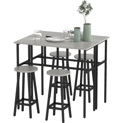 HOMCOM 6 Piece Bar Table Set, 2 Breakfast Tables with 4 Stools, Counter Height Dining & Chairs for Kitchen, Living Room, Grey