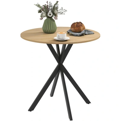 HOMCOM 80cm Round Dining Table, Industrial Kitchen Table with Cross Steel Legs for Room, Kitchen, Living Oak