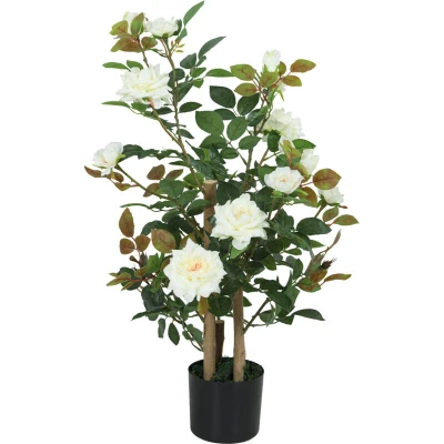 Fake plants can bring life to a space, but keeping real ones vibrant is a constant chore. The frustration of wilting petals and the demands of watering and sunlight can make your home feel less relaxing. The HOMCOM artificial plant offers a solution. Standing 90 cm tall with a full, four-pole design, it provides maintenance-free greenery indoors or out, bringing effortless elegance to your living room or patio. Specifications: ● Colour: White ● Material: Silk Fabric, PE, Wood, Cement, Moss ● Type: Rose ● Overall Height: 90 cm ● Pot Size: Φ15 x 12.8H cm ● Item Label: 83C-214V00WT Features: ● This 90 cm rose tree adds a touch of elegance to any space ● Features a unique four-stem design with 344 leaves for a lush look ● Enjoy these maintenance-free fake plants without watering, pruning or sunlight ● UV-resistant materials ensure vibrant white tones for indoor or outdoor display ● A cement-filled base provides excellent stability for placement anywhere ● No assembly required