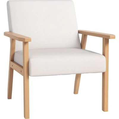 HOMCOM Accent Chair Wood Frame with Thick Linen Cushions Wide Seat Armchair Home Furniture Bedroom Office Cream White