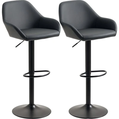 General description Inject beautiful style into your kitchen counter or bar dining area with the Adjustable Bar Stools Set of 2 from HOMCOM. This set instantly creates a matching look in your home, featuring a with-back and with-arm design for added comfort. The stools come with a 360° swivel and gas lift design, allowing you to sit comfortably at various heights. Technical specifications Colour: Black Material: PU Leather, Steel, Foam Overall Dimensions: 50W x 50D x 86-106H cm Seat Dimension: 37W x 36D x 60-80H cm Footrest Dimension: 28W x 17D x 20-40H cm Cushion Thickness: 6 cm (seat) Base Dimension: Φ38 cm Weight Capacity: 120 kg Item Label: 835-733V70BK Usage Suitable for home bars, kitchens, and high dining spots Seat height is adjustable from counter height to bar height using the gas lift Swivel seat allows for 360 degrees of free rotation Footrest prevents legs from dangling Easy maintenance with skin-friendly PU leather Other information Assembly required Powder-coated steel