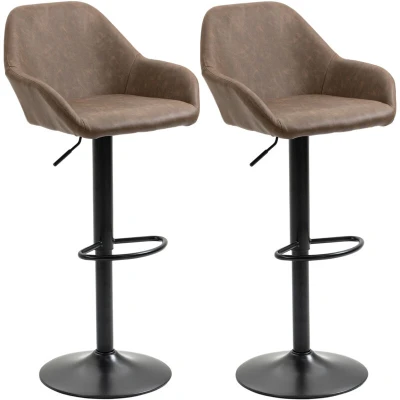 HOMCOM Adjustable Bar Stools Set of 2, Swivel Barstools with Footrest and Backrest, PU Leather Steel Base, for Kitchen Counter Dining Room, Dark Brown