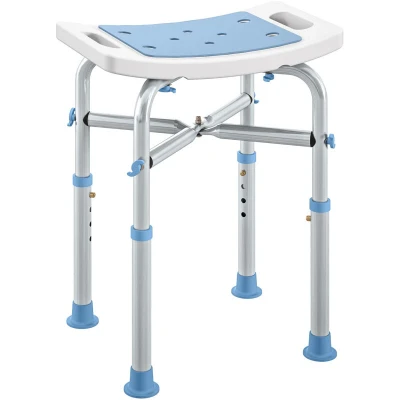 HOMCOM Adjustable Shower Stool with Foot Pads for Elderly, Light Blue