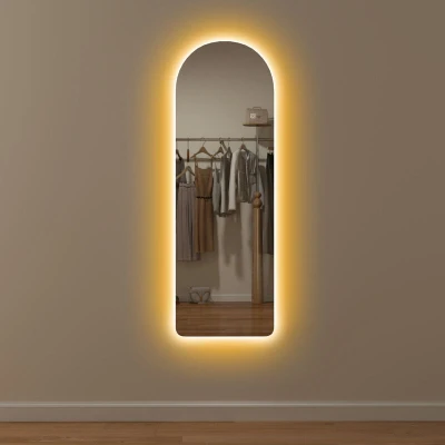 HOMCOM Arched Full Length Mirror with LED Lights, 120 x 40cm Backlit Frameless Wall Dimming and 3 Colour Lighting for Living Room, Bedroom, Clear