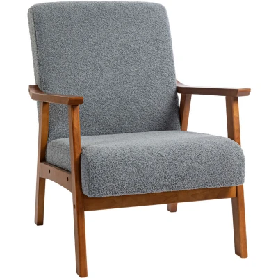 HOMCOM Armchair with Wide Seat, Boucle Accent Chair, Thick Padded Occasional Chair Solid Wood Frame for Living Room Bedroom Home Office Reception Balcony, Grey