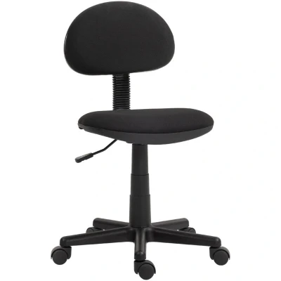 General description A comfortable spot for working days, the HOMCOM Armless Office Chair features a simple design with a padded seat and back panel for enhanced comfort. Its armless structure provides ample freedom of movement and allows the chair to tuck neatly under your desk. Technical specifications Colour: Black Materials: Elastic Fabric (100% Polyester), Sponge, Steel, Multilayer Board Overall Dimensions: 43W x 51D x 73-85H cm Seat Size: 43W x 40D x 40-52H cm Seat Thickness: 6 cm Back Size: 40W x 33H x 6D cm Weight Capacity: 120 kg Item Label: 921-727V70BK Installation Assembly is required for this chair. Usage The chair features a padded seat and back for comfortable use, an armless design for easy movement, and a height-adjustable seat ranging from 40 to 52 cm to suit your preferred working level. The five wheels and swivel seat provide full freedom of movement.