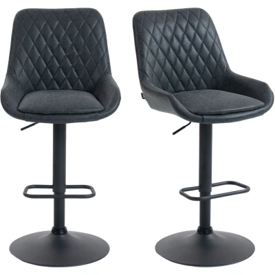 A stylish look for your kitchen dining spots with these HOMCOM bar stools. Faux leather upholstery for a beautiful look. Padded seat and high back to keep you comfortable and supported. A metal base for strength and keeping you supported, the height is adjustable between 63-83cm: set to a level best for you. Completed with a lower footrest. Specifications: ● Colour: Black ● Material: PU Leather, Steel, Sponge ● Overall Dimensions: 51W x 59D x 97-117H cm ● Seat Dimension: 51W x 40D x 63-83H cm ● Backrest Dimension: 47W x 39.5H cm ● Footrest Height: 22-42 cm ● Base Dimension: Φ45cm ● Suitable Bar Table Height: 93-113 cm ● Weight Capacity: 110 kg ● Item Label: 835-871V71BK Features: ● Set of two to create a matching look in your home ● 360° swivel seat works with your body's motion ● Seat height is adjustable from bar height to counter height ● Faux leather upholstery with diamond tufting for cool style ● Powder-coated steel base, with anti-slip foot pad and handy footrest ● Maximum load
