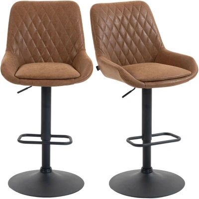 A stylish look for your kitchen dining spots with these HOMCOM bar stools. Faux leather upholstery for a beautiful look. Padded seat and high back to keep you comfortable and supported. A metal base for strength and keeping you supported, the height is adjustable between 63-83cm: set to a level best for you. Completed with a lower footrest. Specifications: ● Colour: Orange, Black ● Material: PU Leather, Steel, Sponge ● Overall Dimensions: 51W x 59D x 97-117H cm ● Seat Dimension: 51W x 40D x 63-83H cm ● Backrest Dimension: 47W x 39.5H cm ● Footrest Height: 22-42 cm ● Base Dimension: Φ45cm ● Suitable Bar Table Height: 93-113 cm ● Weight Capacity: 110 kg ● Item Label: 835-871V71OG Features: ● Set of two to create a matching look in your home ● 360° swivel seat works with your body's motion ● Seat height is adjustable from bar height to counter height ● Faux leather upholstery with diamond tufting for cool style ● Powder-coated steel base, with anti-slip foot pad and handy footrest ●