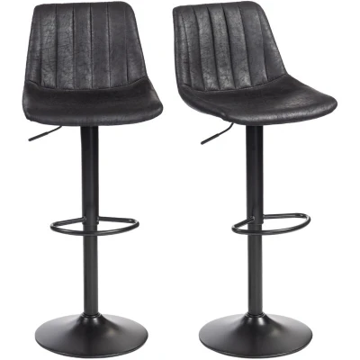 Both these HOMCOM breakfast bar stools are adjustable in height, with the 360° tub seat - easy and comfortable for your kitchen and beyond. The powder coated metal frame means a strong core., with a round base for balance the rubber anti-slip ring gently protects the floor. Comes in a set of two kitchen stools for an easy matching look. Specifications: ● Colour: Black ● Materials: Leathaire, Sponge, Steel, Multi-layered Board ● Overall Dimension: 43W x 46.5D x 89-110Hcm ● Seat Size: 43W x 36.5D x 59-80Hcm ● Backrest Size: 43W x 35H x 3Dcm ● Footrest Height to Floor: 21-42Hcm ● Base Diameter: Φ38.5cm ● Suitable Table Height: 89-110cm ● Maximum load: 120kg ● Item Label: 835-228V71BK Features: ● Upholstered with worn-effect leathaire in a suave tone ● Armless tub shape offers plenty of sitting room ● Slight curved back and built-in footrest enhance seating support ● 59-80cm adjustable seat height: set to a position best for you ● 360° seat movement for free motion ● Powder-coated metal