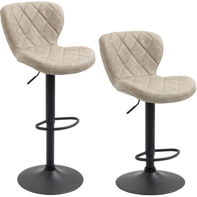 HOMCOM Bar Stools, Set of 2 Breakfast Chairs, Swivel Barstools with Backrest and Footrest, Steel Frame Diamond Pattern PU, for Kitchen Counter, Dining Room, Light Khaki