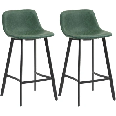 HOMCOM Bar Stools Set of 2, Chairs with Back and Steel Legs, Green