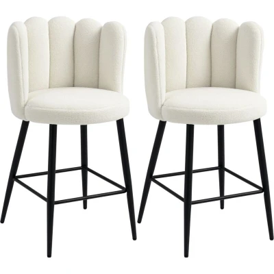 HOMCOM Bar Stools Set of 2, Faux Cashmere Upholstered Breakfast Chairs, Modern Kitchen with Backs, Footrest and Steel Base, Cream
