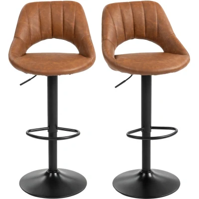 HOMCOM Bar Stools Set of 2, Height Adjustable Swivel Barstools with Backrest and Footrest, PU Leather Upholstered Dining for Kitchen, Counter, Breakfast Bar, Brown