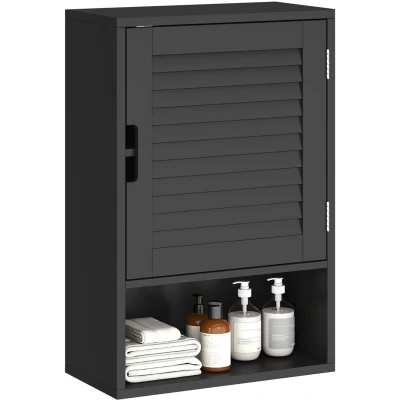 Tired of chaotic mornings in a cramped, cluttered bathroom? The constant search for items and the jarring slam of cabinet doors can disrupt your peace. The HOMCOM wall mounted bathroom cabinet helps you reclaim your space and serenity. Its wall-mount design clears your counters, while adjustable shelves organise your essentials. Specifications: ● Colour: Black ● Material: MDF ● Overall Dimension: 40W x 20D x 60H cm ● Door Size: 37W x 39.6H cm ● Inner Space: 37.5W x 16.5D x 40.6H cm ● Lower Compartment Size: 37.5W x 18.2D x 15.2H cm ● Shelf height adjustment: 6.4 cm ● Weight capacity: 2 kg (per shelf), 6 kg (overall) ● Item Label: 837-698V80BK Features: ● Includes a 3-position adjustable shelf to customise storage for various toiletries ● Compact wall-mounted design saves valuable floor space ● Crafted from stable MDF, ensuring long-lasting use and reliability ● Stylish black finish and louvered door elevate your bathroom decor ● Holds up to 6kg overall, securely storing all your daily
